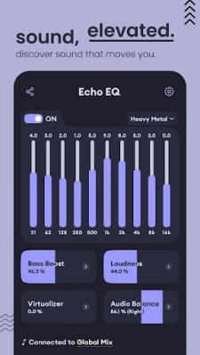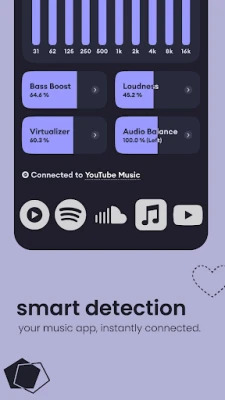 No setup needed! Echo Equalizer: Bass Booster enhances sound in music players, streaming apps, video players, and gaming apps. Enjoy consistent equalizer effects, bass boost, and volume boost everywhere! Whether using Spotify, YouTube, or local media players, get superior sound quality.