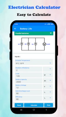 🧮 Calculators: You can use various calculators, unit converters and useful tables. For example Ohm's law calculator, conductor size, voltage drop, power loss in cable, battery life, voltage divider etc. They will help you in providing quick references and accurate calculations.