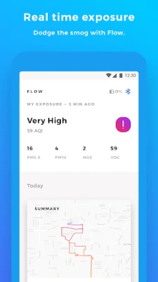 Avoid the most polluted places: Flow tracks air pollution variations around you in real time, so you can find clean air.
