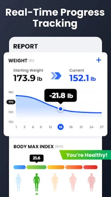 √ The chart tracks your weight trends
