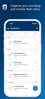 The new Philips SpeechLive app allows you to take full control of your document creation workflow. You can turn your dictations into written text quicker and easier than ever before.