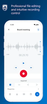 The app offers professional quality recording functions, such as the ability to insert or trim audio sequences and even allows you to attach images to your recordings.