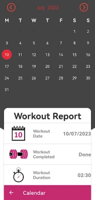 - A calendar to keep track of the days you have trained. In addition, it includes the last time of the last training you have done on a specific day.