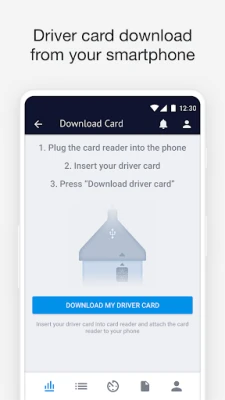 No need to use expensive and inconvenient tachograph driver card reading devices. All you need now is a standard card reader - plug it in your phone or tablet and start downloading card data on the go.