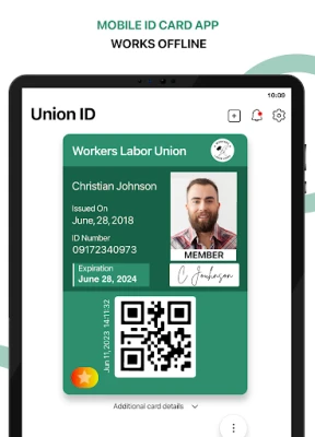 Unions are making their ID cards more useful and convenient for their members by offering them digitally. The Union ID app stores your digital union ID card on your mobile device. It offers a simple way to prove your affiliation. You can also opt-in to receive messages, updates and information from your union.